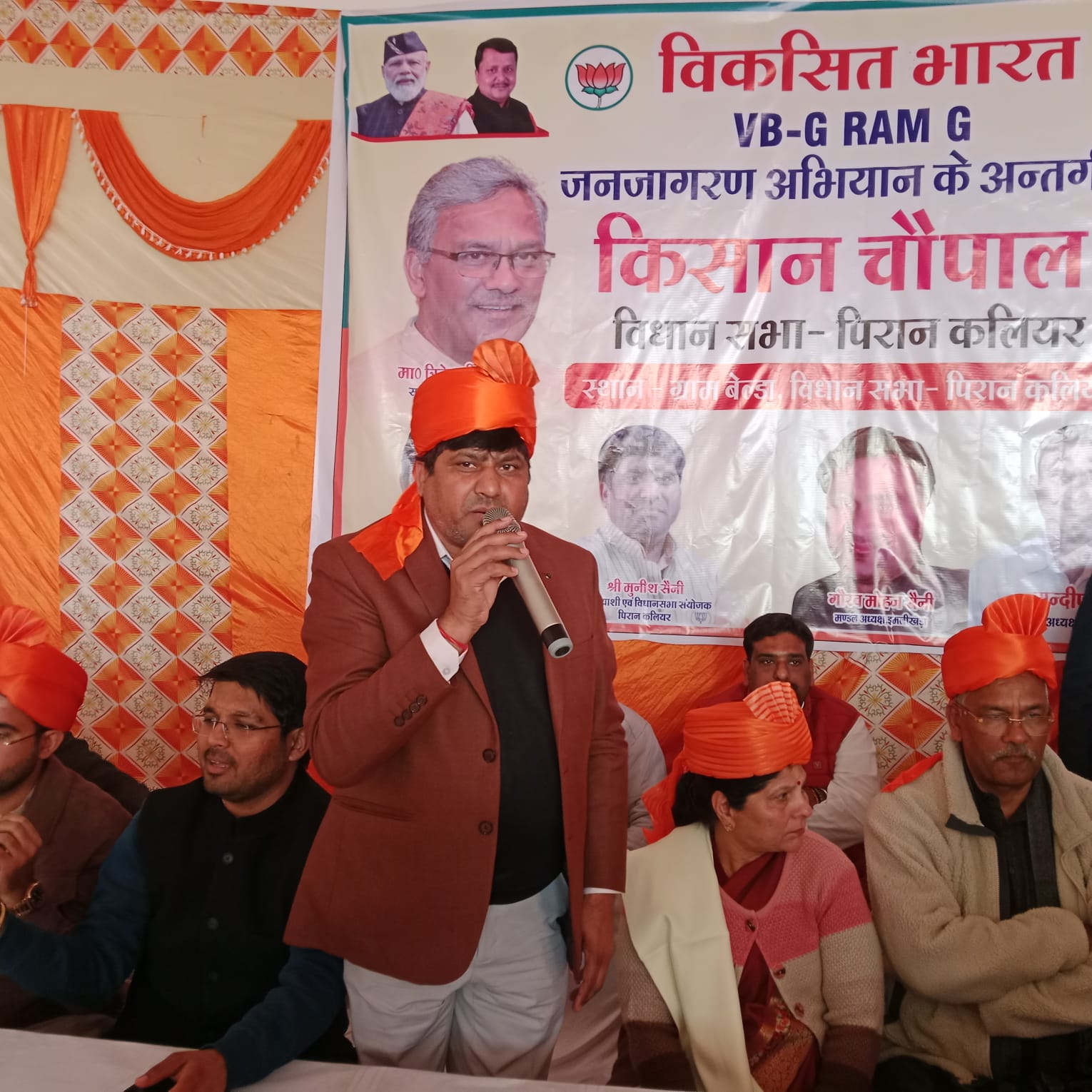 पिरान कलियर विधानसभा क्षेत्र के ग्राम बेल्डा में विकसित भारत–गारंटी फॉर रोजगार एवं आजीविका मिशन (ग्रामीण) के अंतर्गत एक भव्य किसान चौपाल सम्मेलन का आयोजन किया गया। इस कार्यक्रम का नेतृत्व कलियर विधानसभा प्रभारी मुनीश सैनी ने किया। इस अवसर पर ग्रामीणों की समस्याएँ, सुझाव एवं आकांक्षाएँ गंभीरता से सुनी गईं और उनके समाधान का भरोसा दिलाया गया।