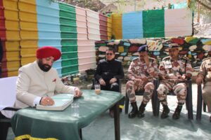 जिले के सीमांत क्षेत्र के ‘वाईब्रेंट विलेज‘ के दो दिन के दौरे पहॅुचे राज्यपाल लेफ्टिनेंट जनरल गुरमीत सिंह (से.नि.) ने अपने भ्रमण के दौरान हर्षिल में आयोजित सैनिक सम्मेलन में जवानों से भेंट करने के साथ ही नेलांग और जादुंग में भी सेना व आईटीबीपी के जवानों के बीच पहुॅंचकर देश की सीमाओं को सुरक्षित बनाए रखने के लिए सैनिकों को योगदान की सराहना की और आने सैन्य जीवन के अनेकों प्रसंग साझा कर सीमा चौकियों पर तैनात जवानों का उत्साहवर्द्धन किया। इस दौरान राज्यपाल ने अपने साथ लाई मिठाईयां एवं अन्य भेंट सामग्री भी सैनिकों को भेंट की।