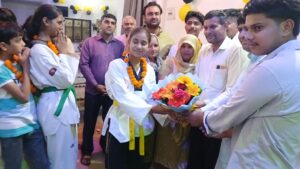 नगर पंचायत इमली खेड़ा में एक छात्र हिमांशी सैनी तेकमांडो प्रतियोगिता मैं गोल्ड मेडल जीतकर फोनिक्स यूनिवर्सिटी का नाम रोशन किया नगर पंचायत इमलीखेड़ा का नाम रोशन करने वाली हिमांशी सैनी को सम्मानित करने पहुंचे बीजेपी के वरिष्ठ नेता मुनीश सैनी ने सम्मानित करते हुए
