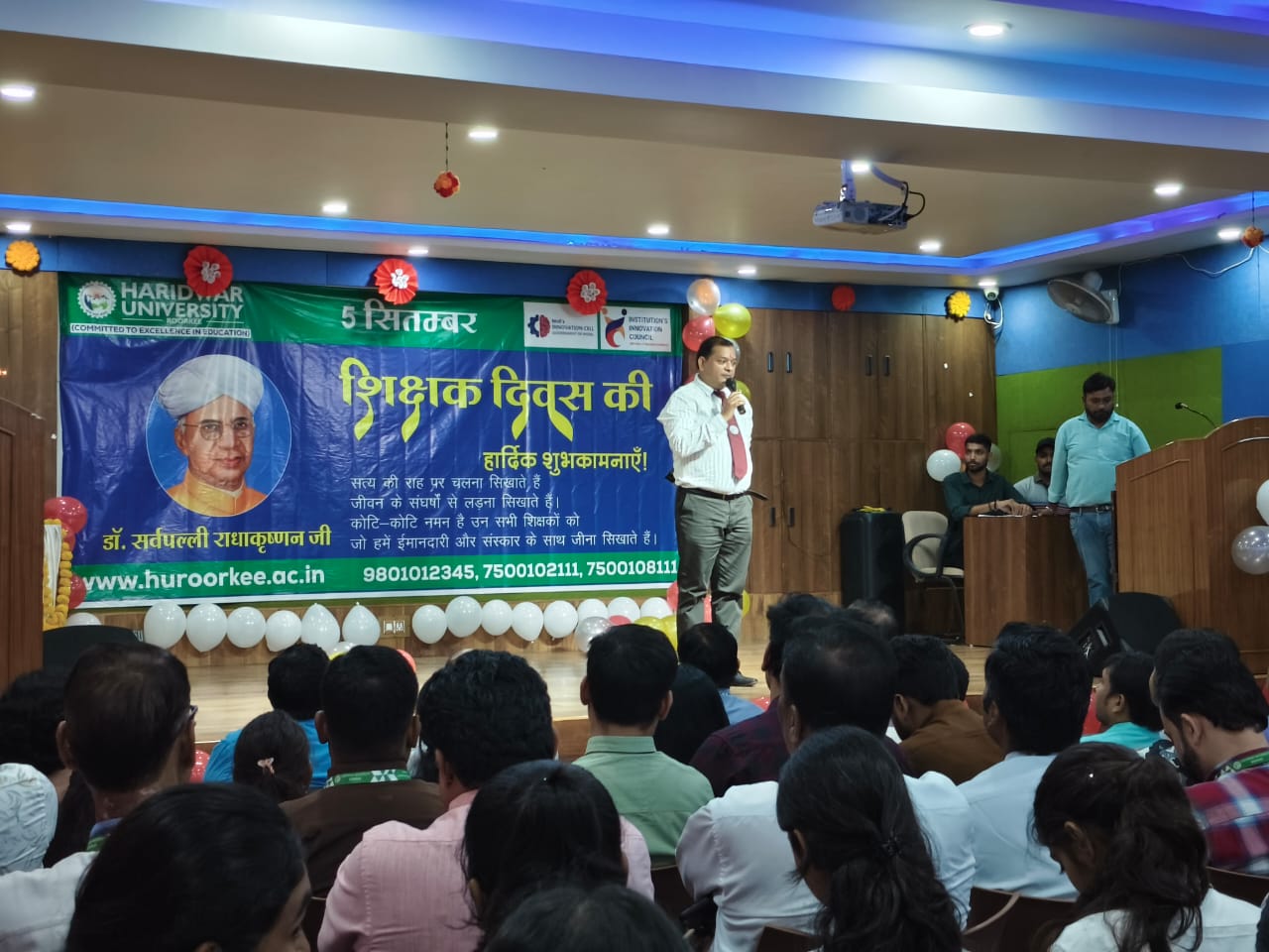 दिनांक 5 सितंबर 2025 को हरिद्वार विष्वविद्यालय रूडकी में शिक्षक दिवस हर्षोल्लास के साथ मनाया गया। यह दिन भारत के पूर्व राष्ट्रपति, महान दार्शनिक और शिक्षाविद डॉ. सर्वपल्ली राधाकृष्णन की जयंती के उपलक्ष्य में प्रत्येक वर्ष मनाया जाता है, जो शिक्षा के क्षेत्र में अपने अमूल्य योगदान के लिए स्मरणीय हैं।