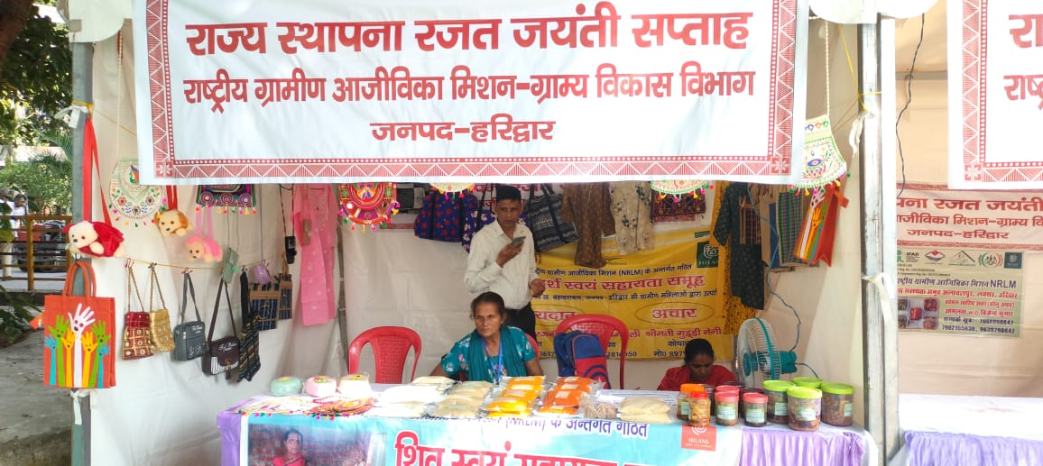 हरिद्वार। उत्तराखंड राज्य स्थापना के २५ गौरवशाली वर्ष पूर्ण होने के उपलक्ष में मुख्यमंत्री पुष्कर धामी के निर्देशन में रजत जयंती सप्ताह कार्यक्रम आयोजित किए जा रहे हैं जनपद के मुख्य कार्यक्रम ऋषिकुल राजकीय आयुर्वेदिक महाविद्यालय परिसर एवं आडिटोरियम में कार्यक्रम आयोजित किए जा रहे हैं। इस अवसर पर ग्राम्य विकास विभाग, हरिद्वार द्वारा लगाए गए स्टॉल के माध्यम से स्वयं सहायता समूहों (Self Help Groups – SHGs) के उत्पादों की बिक्री की गई। इस स्टॉल को लोगों का भरपूर समर्थन मिला और ग्रामीण महिलाओं द्वारा तैयार किए गए उत्पादों ने खूब सराहना बटोरी।