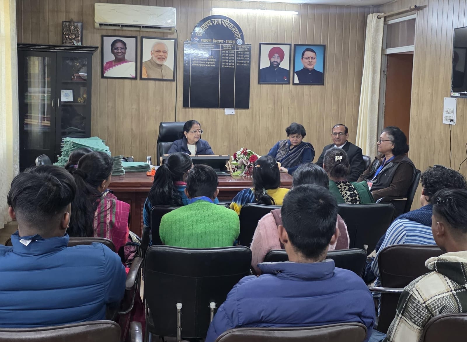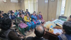 आज उत्तराखंड राज्य महिला आयोग के मुख्यालय नन्दा की चौकी देहरादून में पिथौरागढ़ जनपद के जनजातीय क्षेत्रों से आई जनजाति समूह की महिलाओं व पुरुषों का शैक्षिक एवं जागरूकता भ्रमण कार्यक्रम आयोजित किया गया। इस दौरान महिलाओं ने आयोग के कार्यों, दायित्वों एवं कार्यप्रणाली को नजदीक से देखा और समझा।